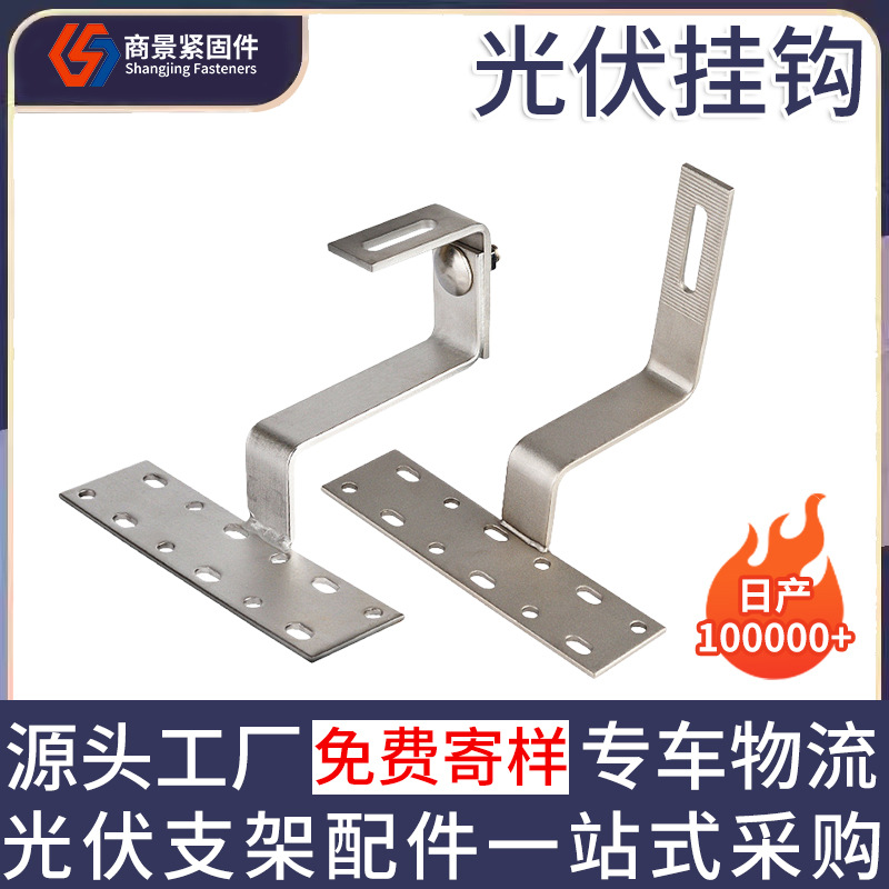 光伏挂钩双挂钩支架 太阳能配件T型屋顶高固定组件厂家可调节挂钩