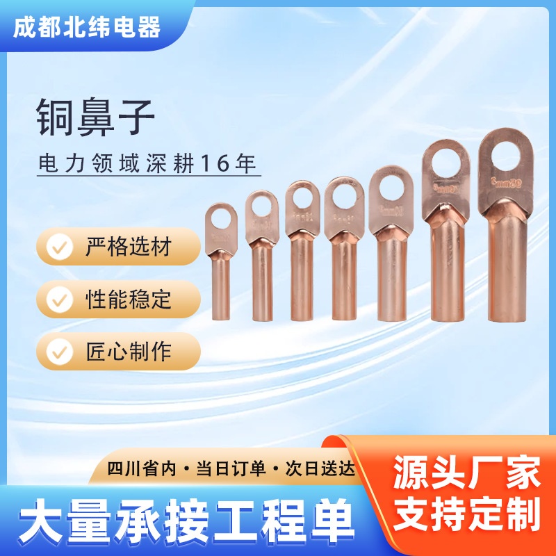 国标DT单孔铜接线端子 铜鼻子紫铜材质电工接线鼻 电缆堵油铜鼻子