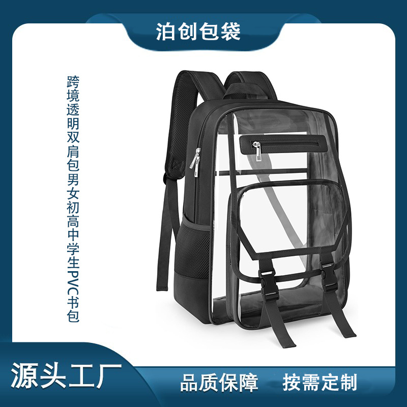 跨境透明双肩包男初高中学生PVC书包女2025新款大容量防泼水背包