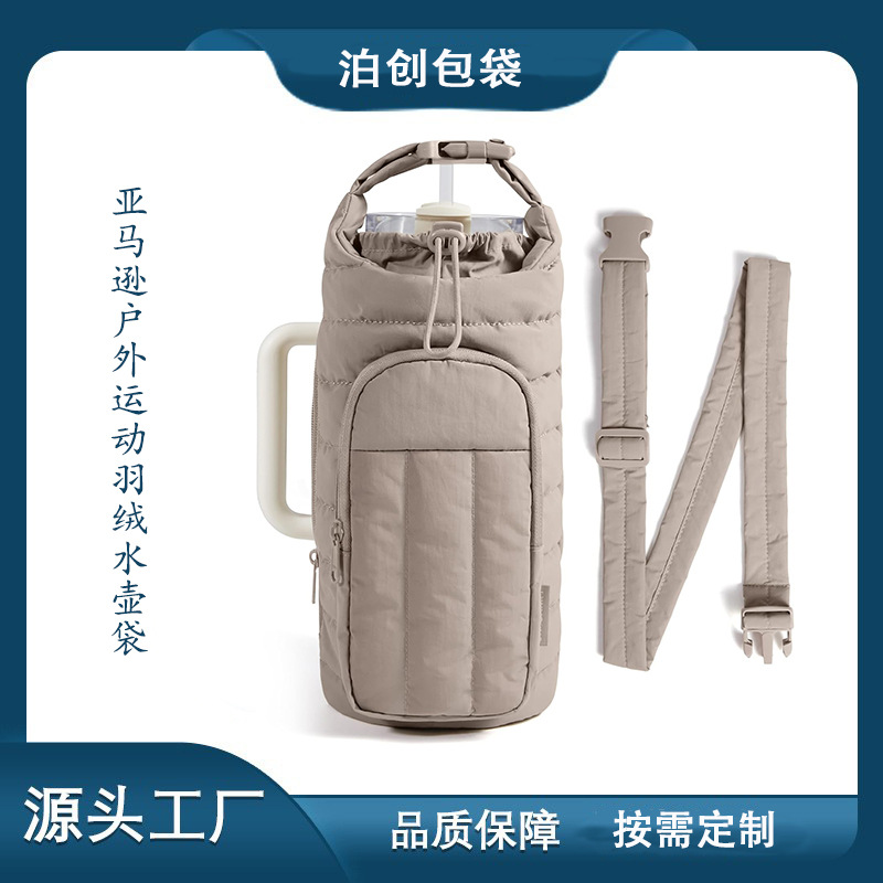 亚马逊户外运动羽绒水壶袋便携大容量斜挎水杯包旅行保温杯套