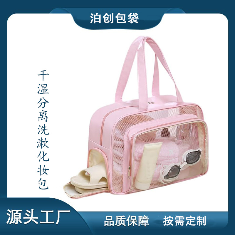 厂家定制透明pvc手提袋 旅行大容量男女士便携洗漱包多功能化妆包