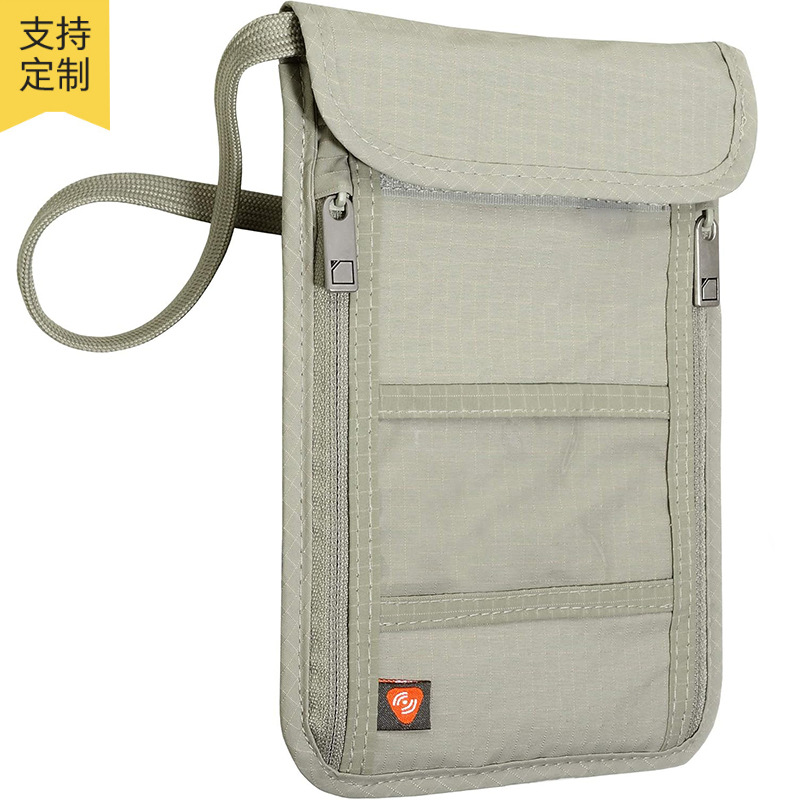 亚马逊热销款挂脖证件袋 黑色防水尼龙证件挂包 出差旅行证件袋