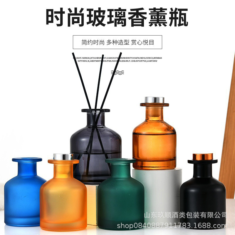 大肚玻璃香薰瓶无火藤条干花扩香瓶哑黑色磨砂避光裸瓶高颜值空瓶