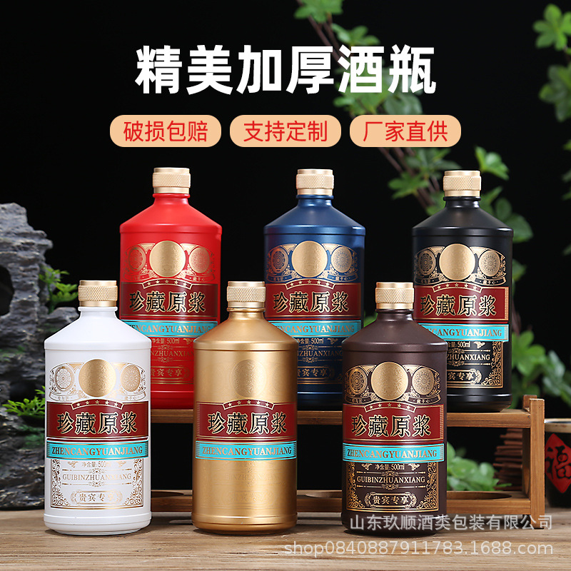 厂家热销500毫升白酒瓶 高档玻璃瓶 喷涂烤花一斤装空酒瓶 酱酒瓶