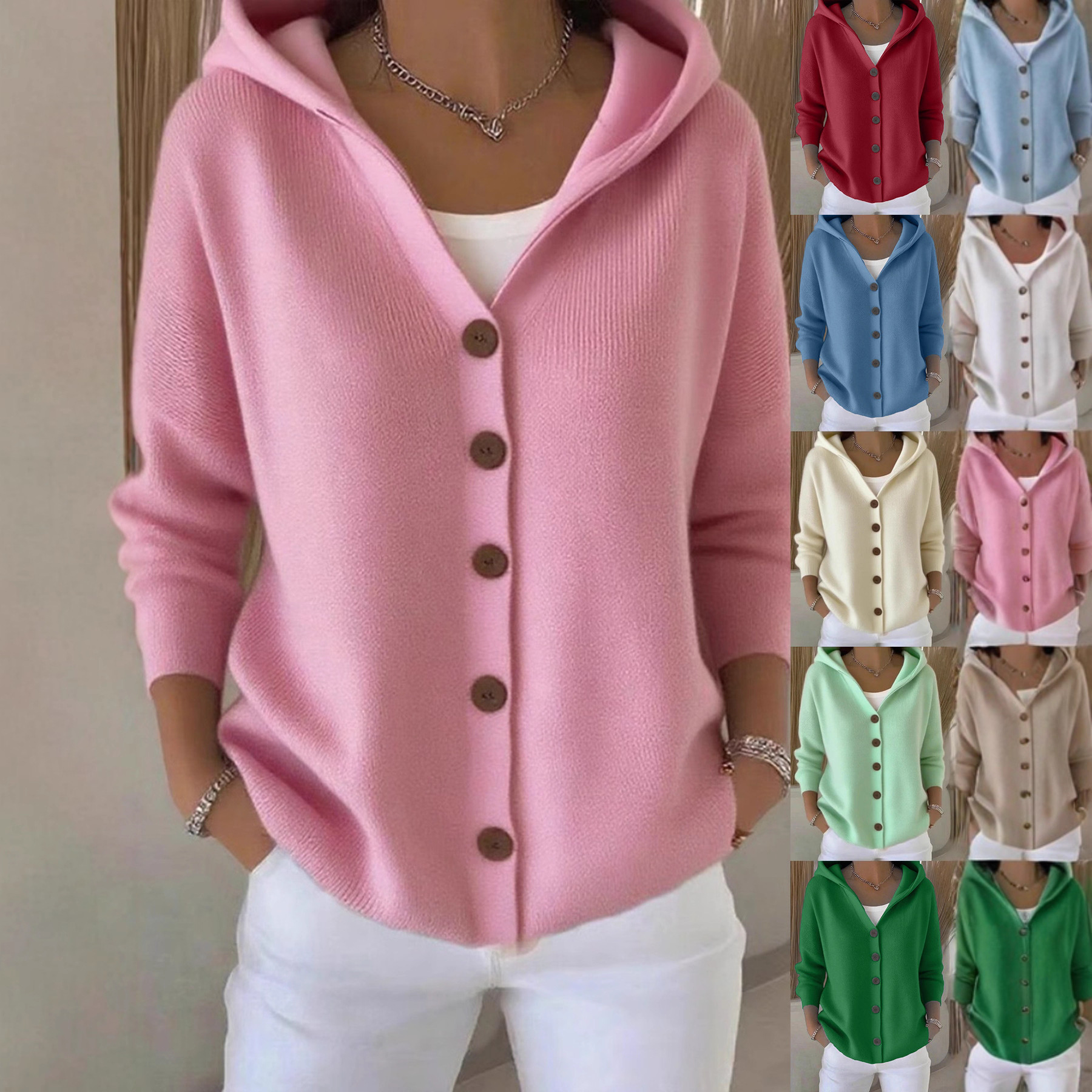 -               跨境外贸欧美风秋冬季新款连帽针织开衫女纯色休闲时尚毛衣外套女