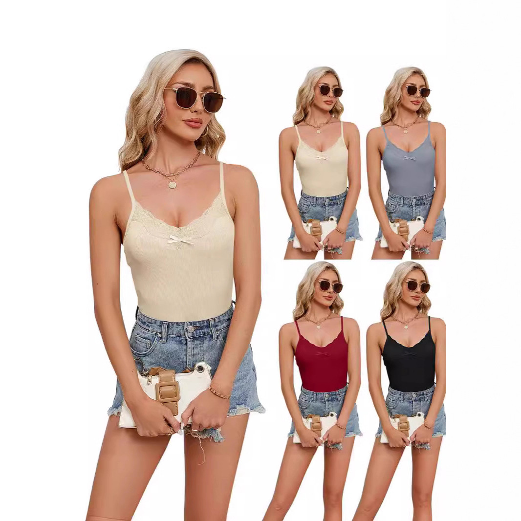 -               2024亚马逊欧美跨境外贸夏季女式蕾丝V领可调节细肩带吊带背心