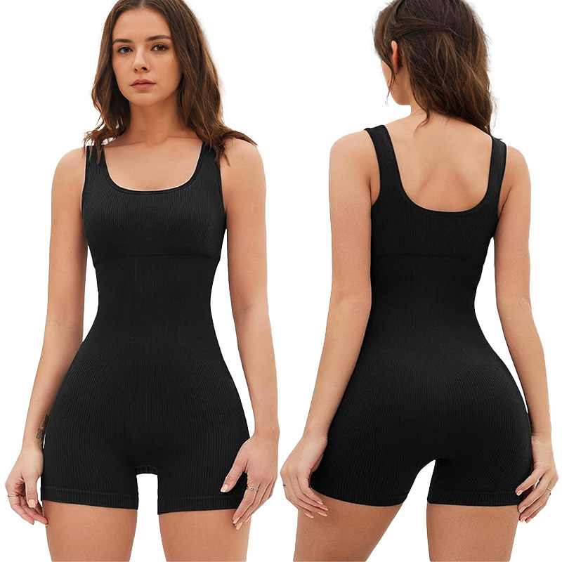 欧美跨境大码女装无袖背心塑身连体衣螺纹方领提臀连体裤