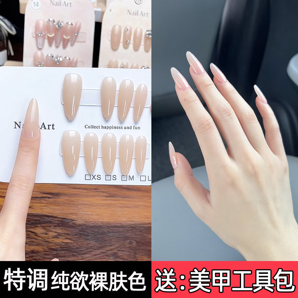 特调甘露本嬛裸色穿戴甲片长中短椭圆杏仁t有色指甲美甲贴半成品