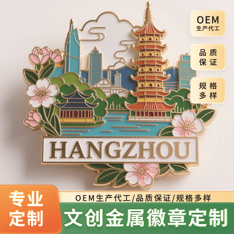 加工城市主题金属冰箱贴 博物馆文创徽章 非遗礼品锌合金浮雕