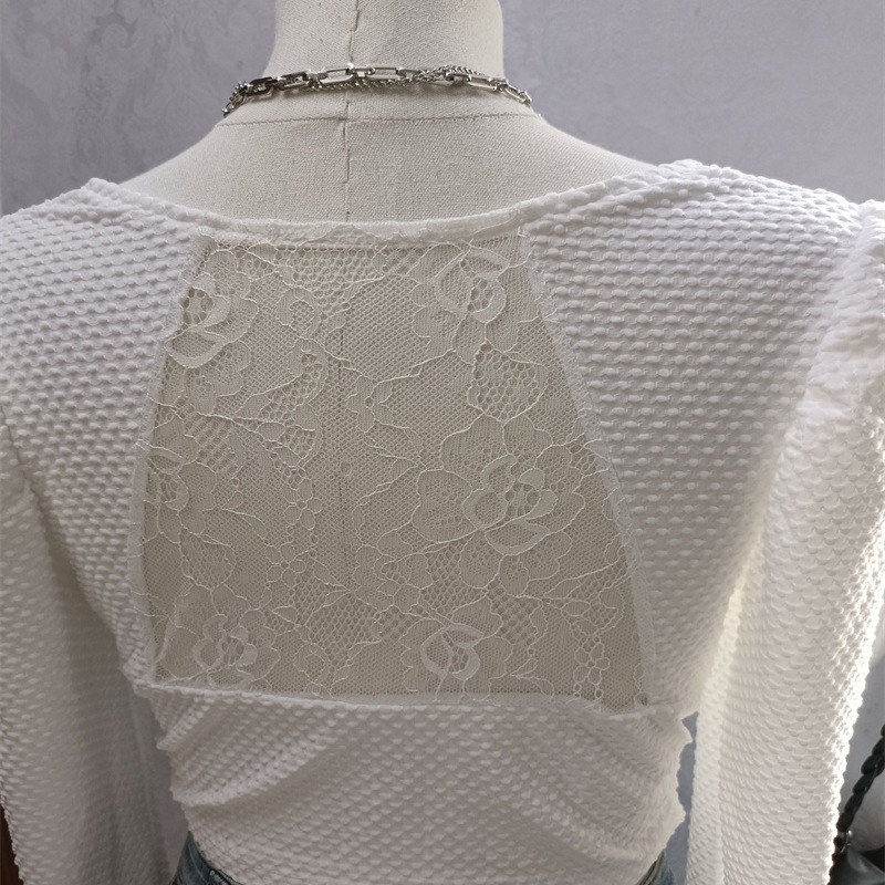 纯欲风小众设计感方领蕾丝拼接长袖衬衫女感春秋季露背上衣