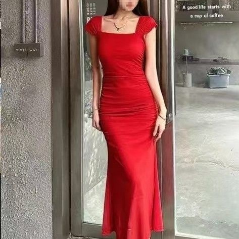法式气质温柔纯欲风夏季吊带连衣裙女修身显瘦设计感辣妹鱼尾长裙