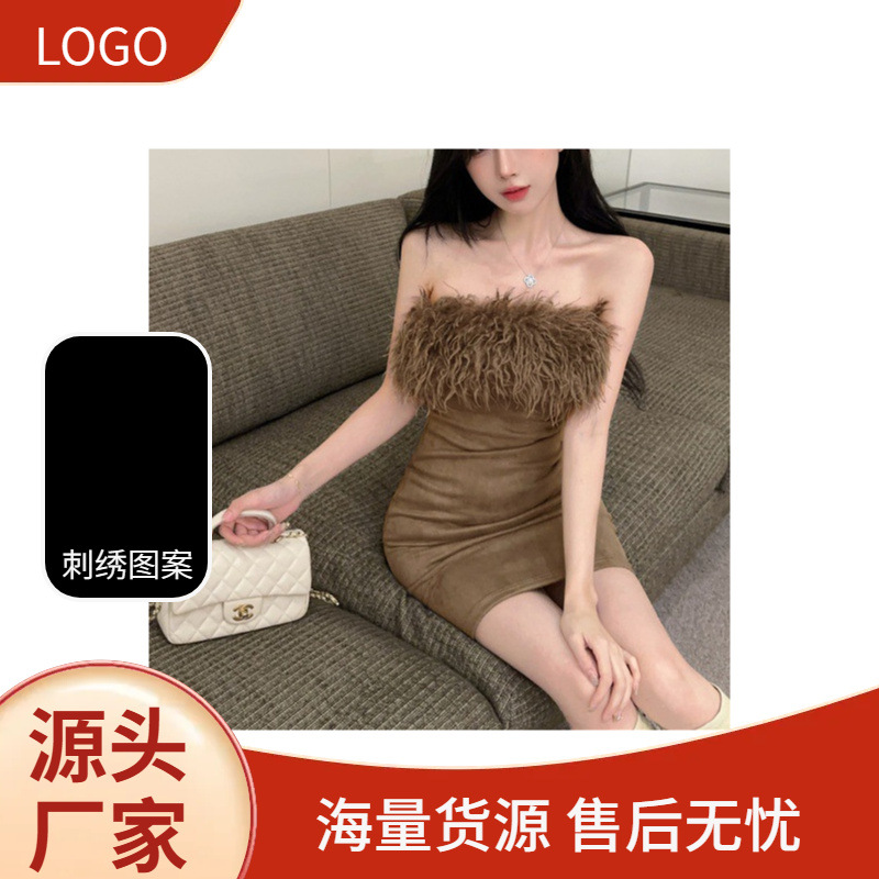 麂皮绒拼接无袖包臀连衣裙女秋季新款修身显瘦辣妹短裙小个子显高