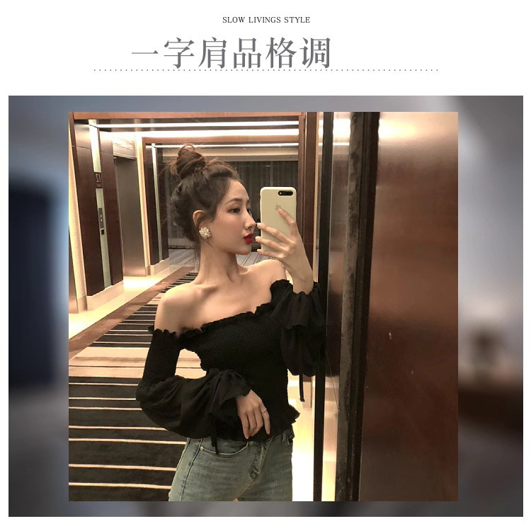 甜辣一字肩上衣女2025春秋新款感抹胸露肩气质绝美雪纺衫衬衫