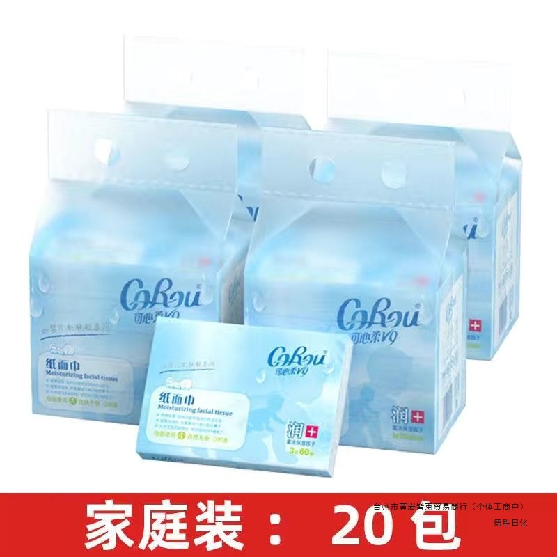 60抽可心柔婴儿抽纸v9婴儿云柔巾家庭宝宝新生儿干湿两用益初柔纸