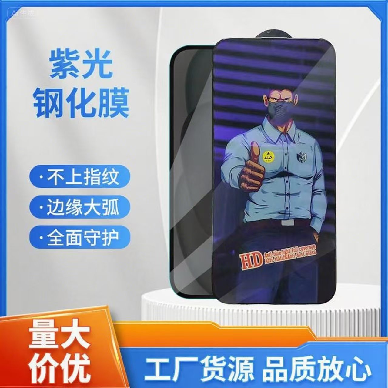 适用苹果17promax紫光16钢化膜15 手机膜13护眼膜IP11/XR防爆防摔