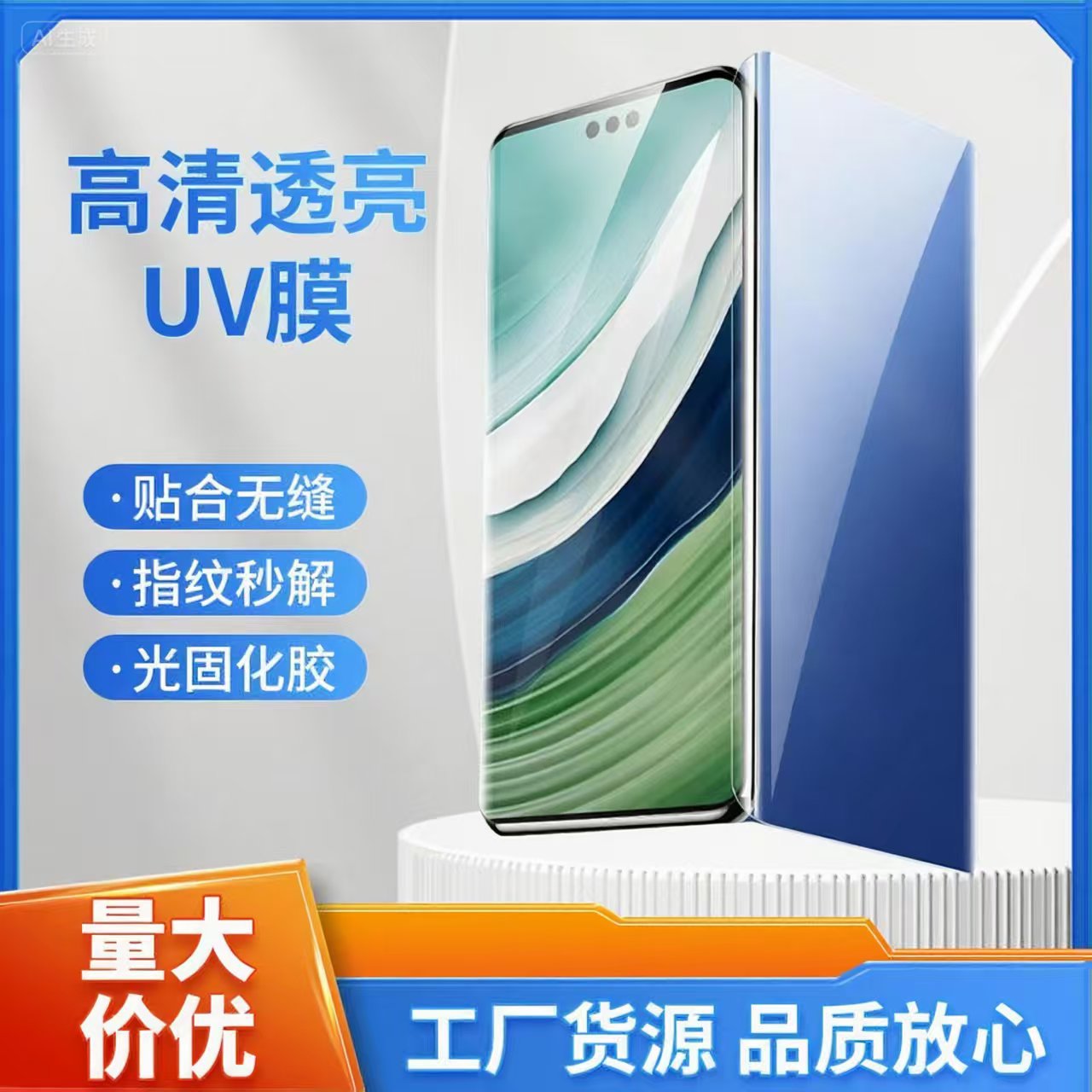 适用华为Mate60proUV膜 P70pro手机曲面保护膜高清膜屏幕防摔贴膜