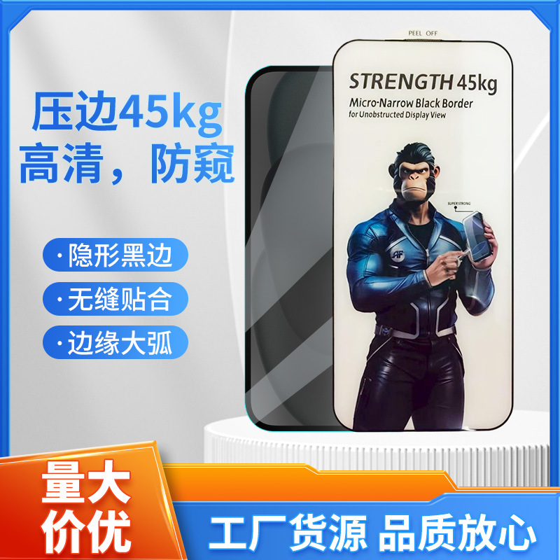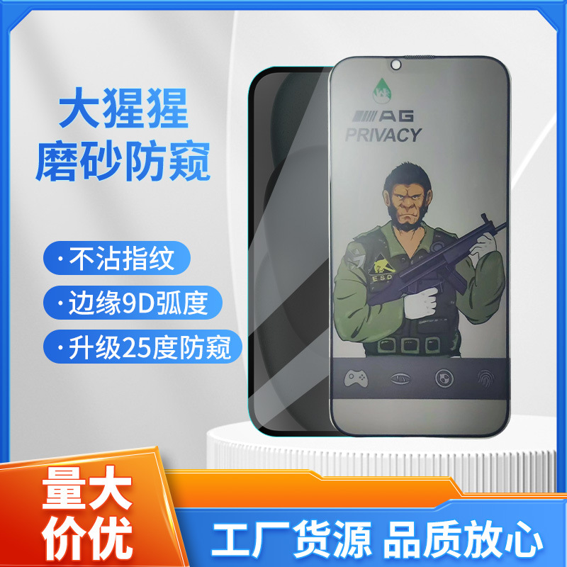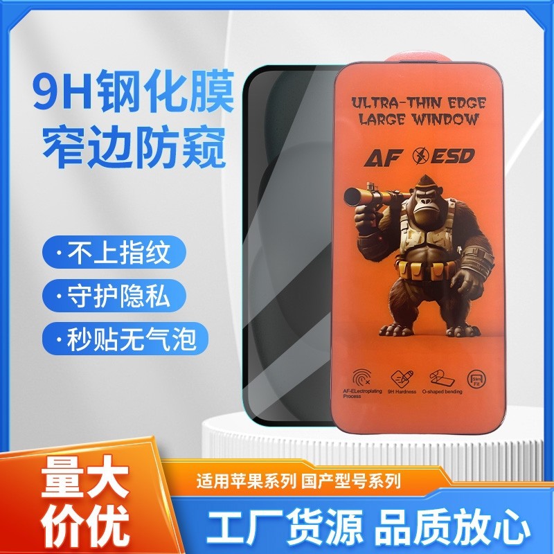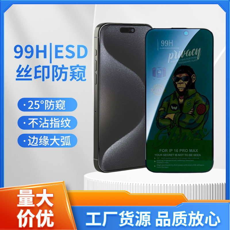 99H大猩猩防窥膜适用苹果17promax钢化膜iphone16大弧13全屏丝印