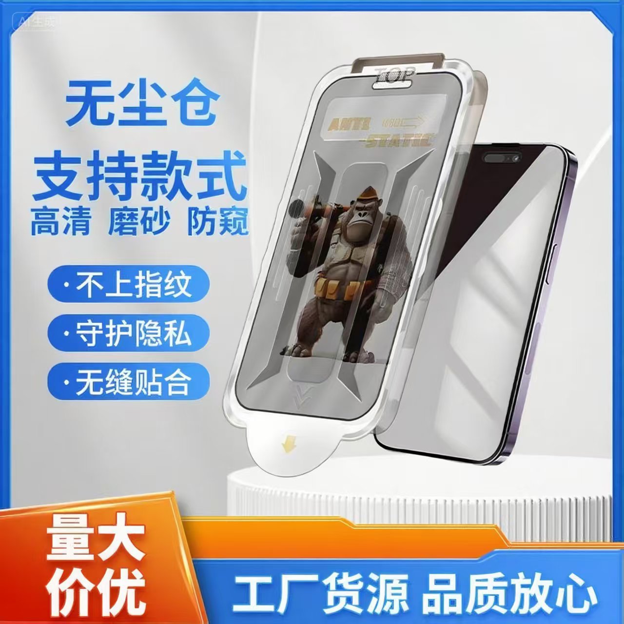 适用苹果16ProMax无尘仓360°防窥膜苹果15Pro除尘秒贴手机保护膜