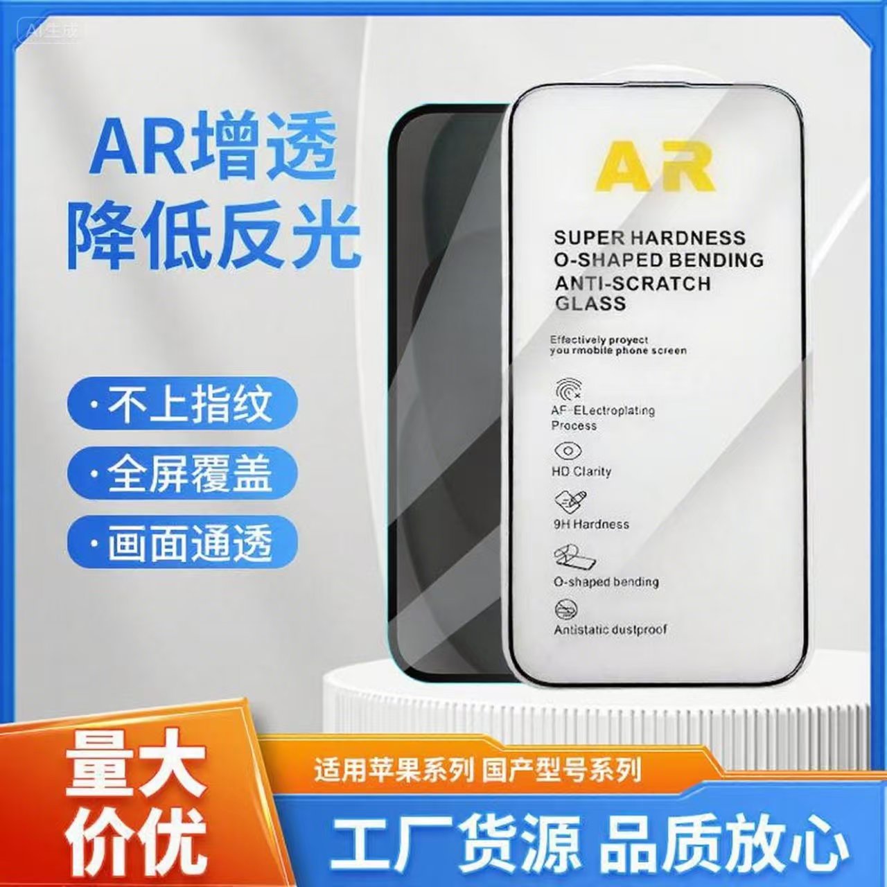 适用苹果ar全屏钢化膜iphone16增透AR大弧高清防尘网一体玻璃贴膜
