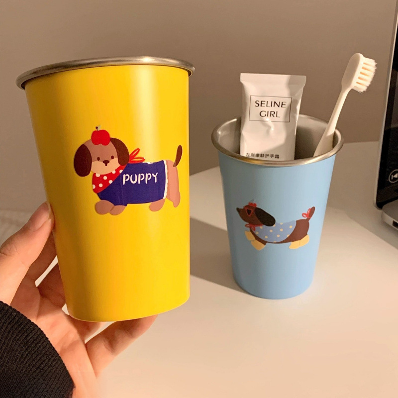 可爱腊肠狗漱口杯家用牙刷杯子洗漱杯情侣学生旅行不锈钢牙具牙杯