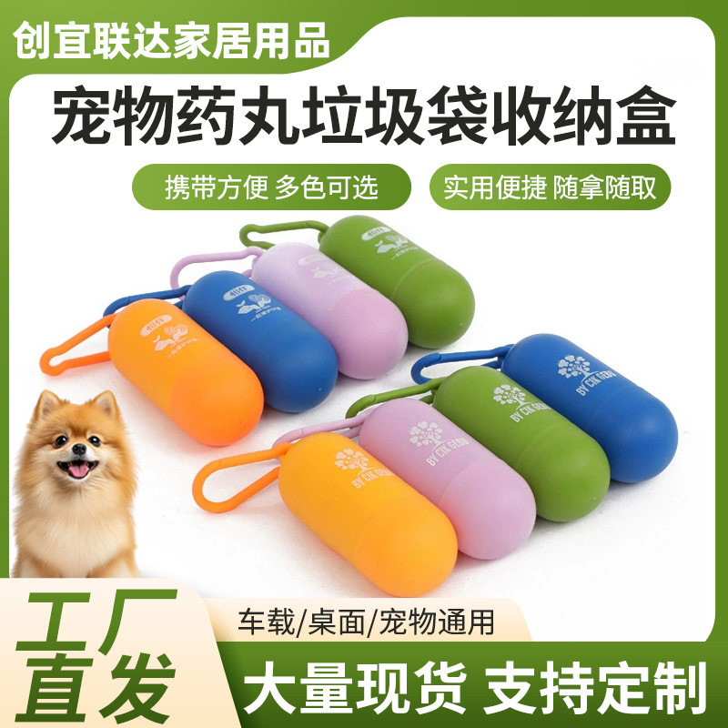 可挂式宠物垃圾袋盒胶囊式狗狗拾便袋收纳器外出便携宠物用品批发
