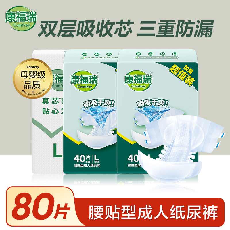 康福瑞成人纸尿裤装L/XL码加大老人失禁加大防漏腰贴型尿不湿