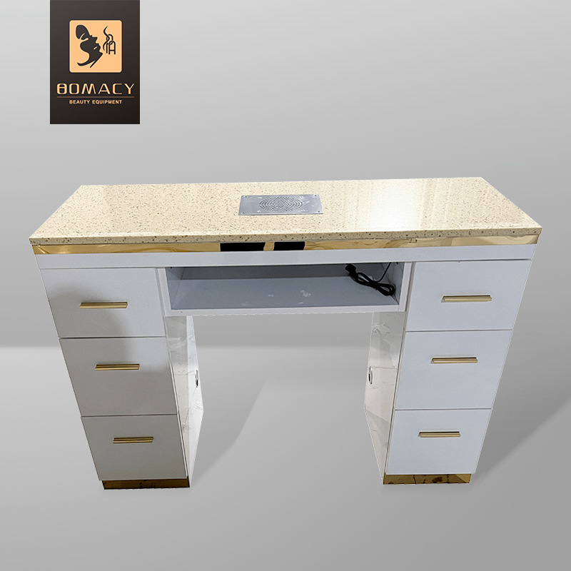 单人位美甲台美甲店白色带抽屉柜子大理石台面实木桌子简约美甲桌