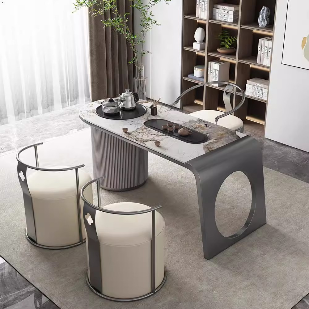 组合家用办公室茶桌轻奢板材金属茶台办公桌茶几一体厂家