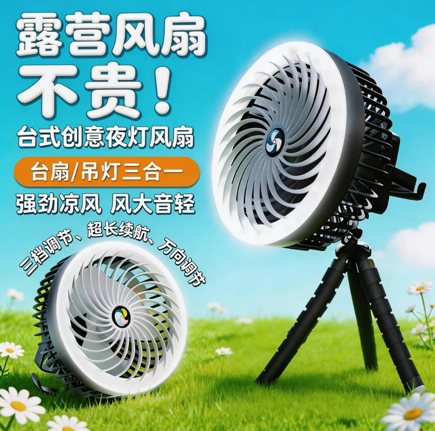 家用桌面充电风扇 户外露营大风力便携式风扇宿舍灯光吊挂小风扇