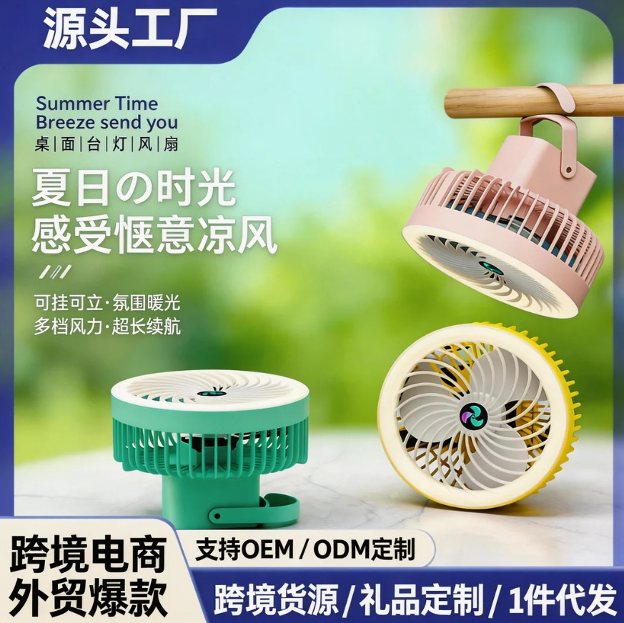 跨境热销桌面小风扇 户外露营挂钩灯光风扇便携式USB充电风扇批发