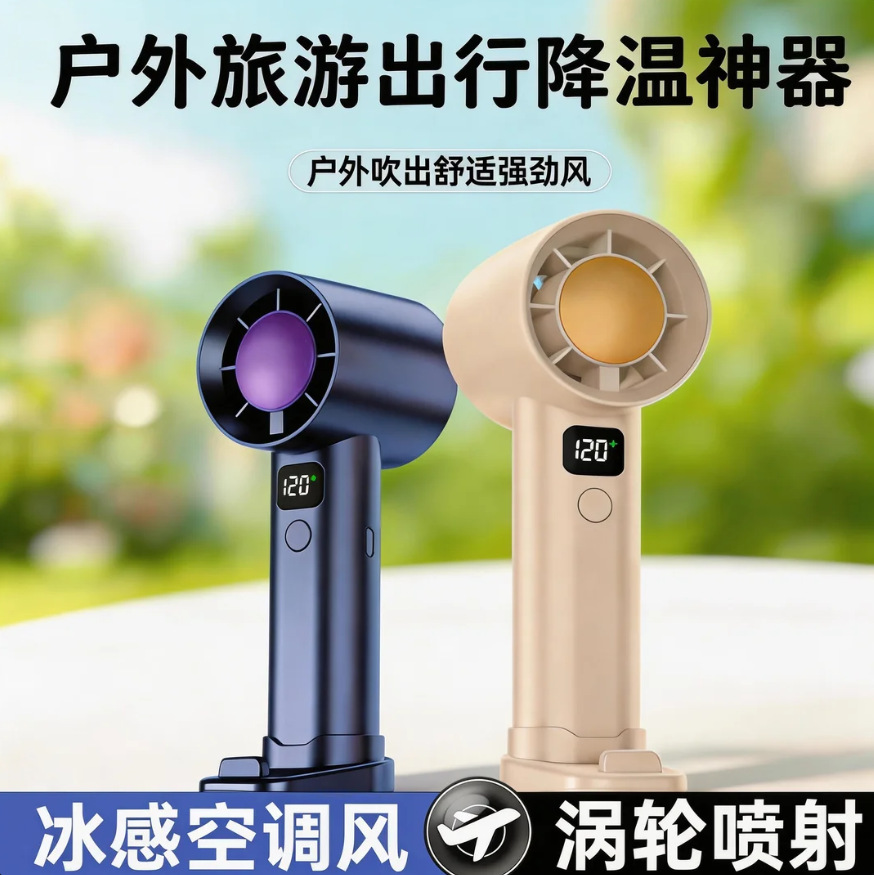 厂家热销手持数显风扇120档高速涡轮风扇户外便携式USB迷你小风扇