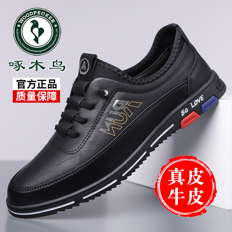 啄木鸟男鞋2025春秋新款真皮休闲中年男士真皮系带防滑运动皮鞋潮