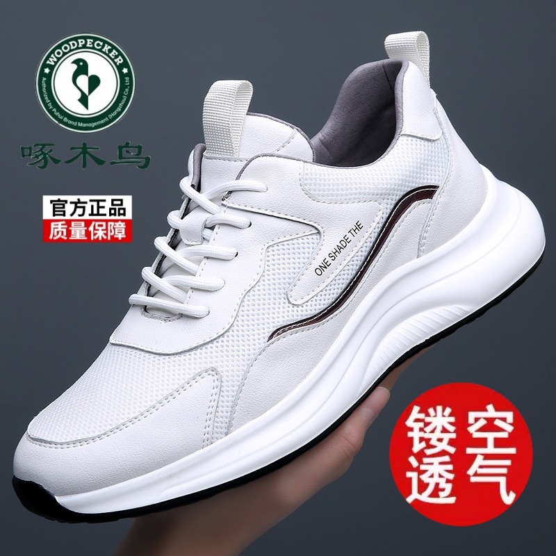 啄木鸟男鞋2025秋季真皮休闲网面运动皮鞋中老年户外旅游鞋透气鞋