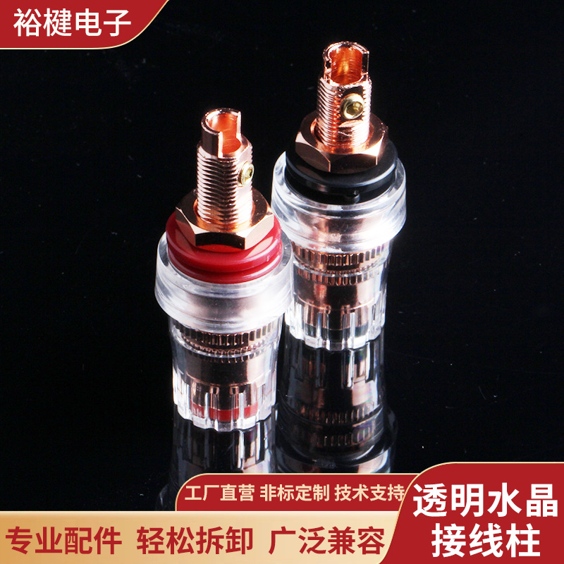 厂家透明水晶接线柱 520音响接线柱 M4纯铜镀金香蕉插座 香蕉母座