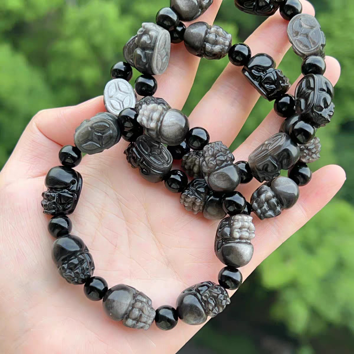 天然银曜石爱心屁桃手链 DIY饰品配件银曜手链爱心屁桃雕刻件手串