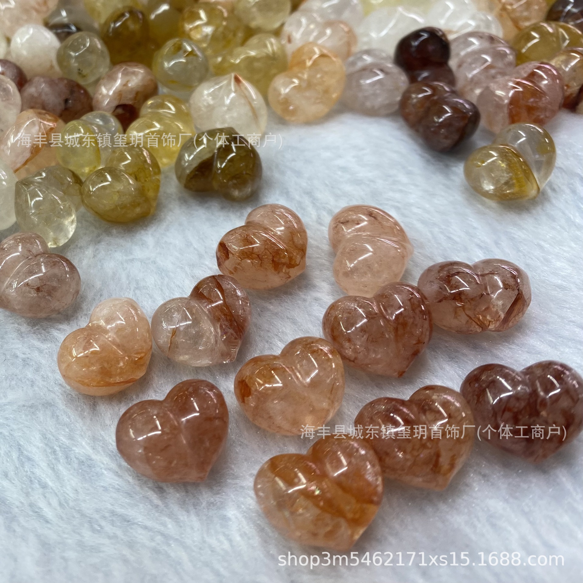 天然胶花爱心屁桃 DIY手链手串隔珠通孔爱心胶花配饰批发