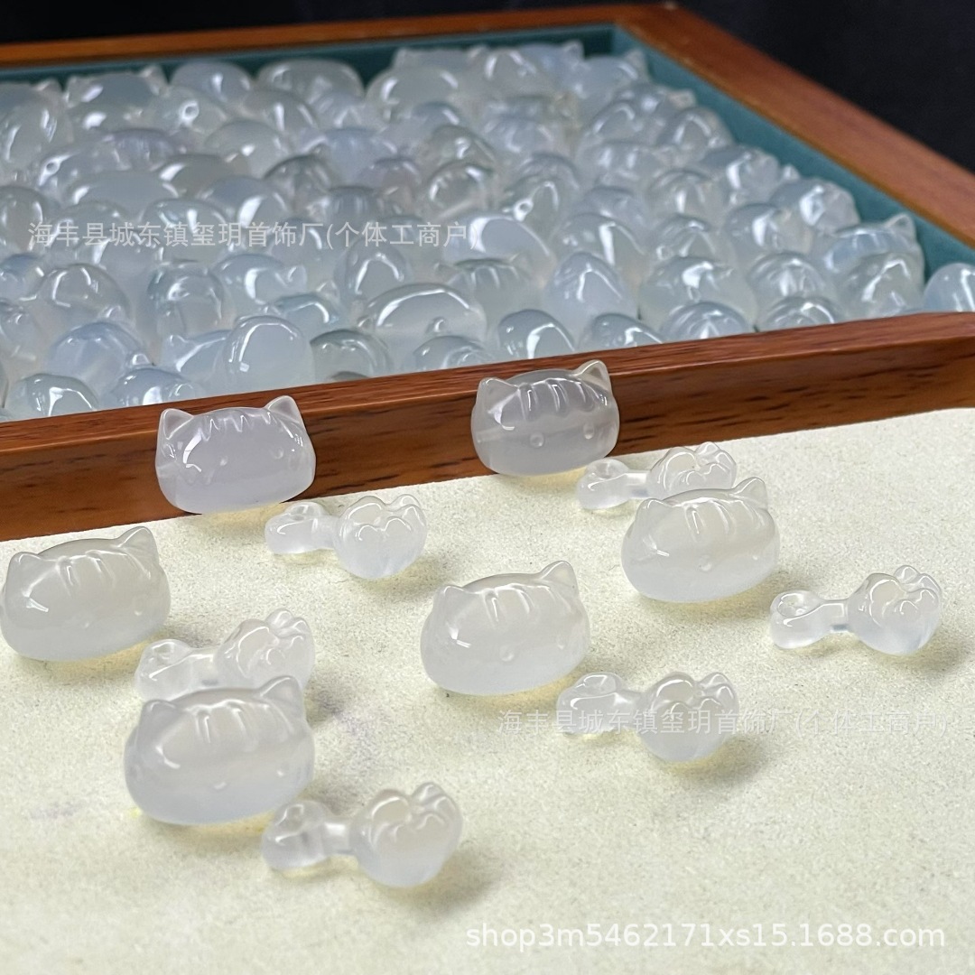 天然白玛瑙玉髓发棍猫 雕刻猫咪猫爪配饰DIY手串手链吊坠猫咪提溜
