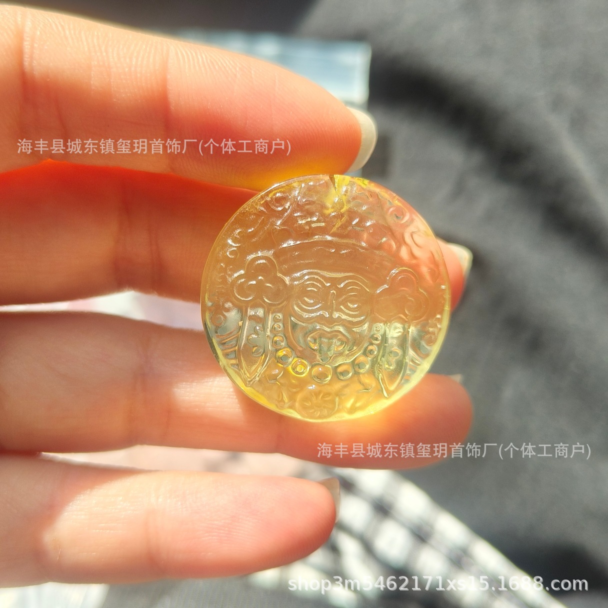 天然柠檬黄水晶扎基拉姆圆牌 黄水晶吊坠DIY项链时尚轻奢圆牌饰品