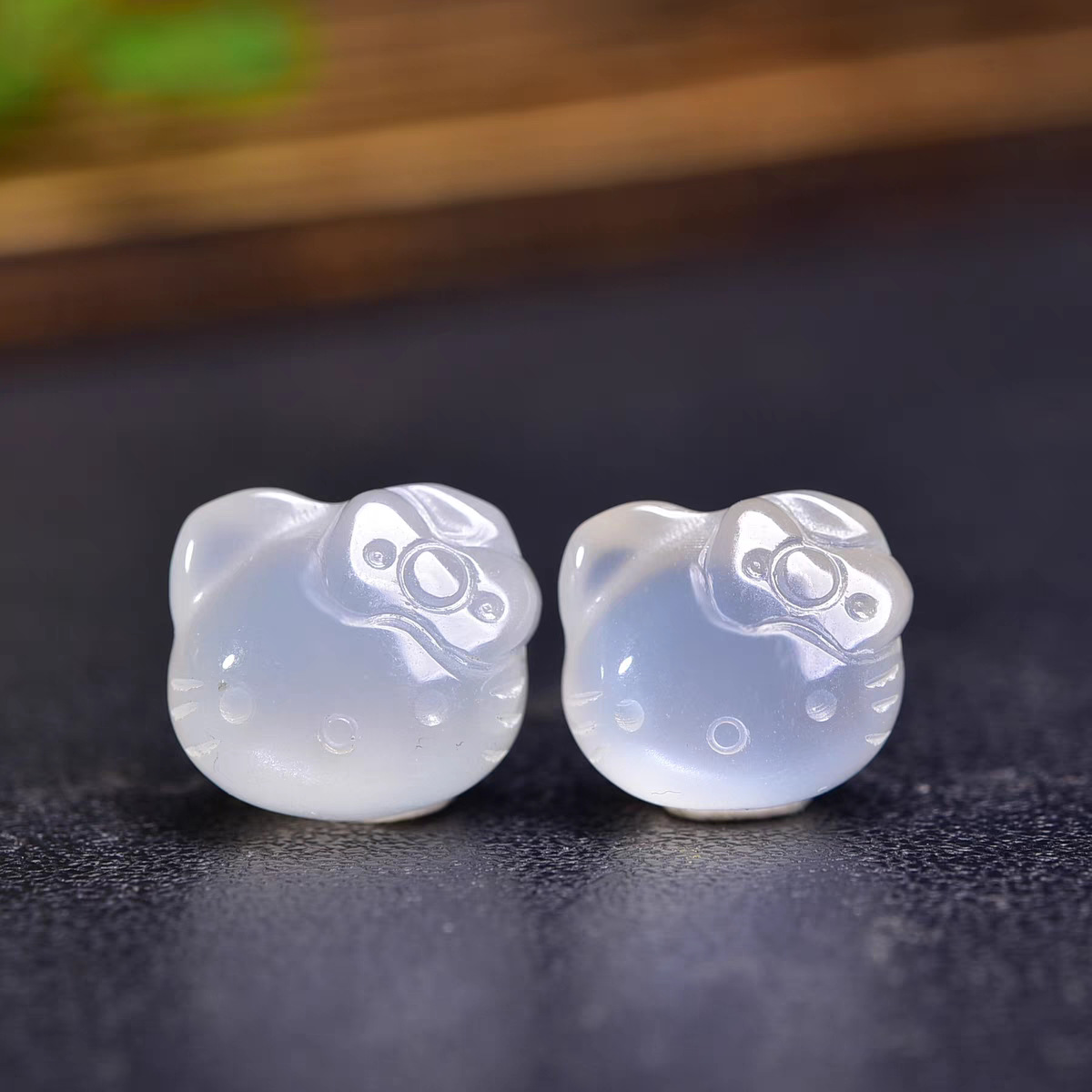 天然荔枝冻白玛瑙Kitty猫头凯蒂猫裸石吊坠 手机挂件可爱KT猫饰品