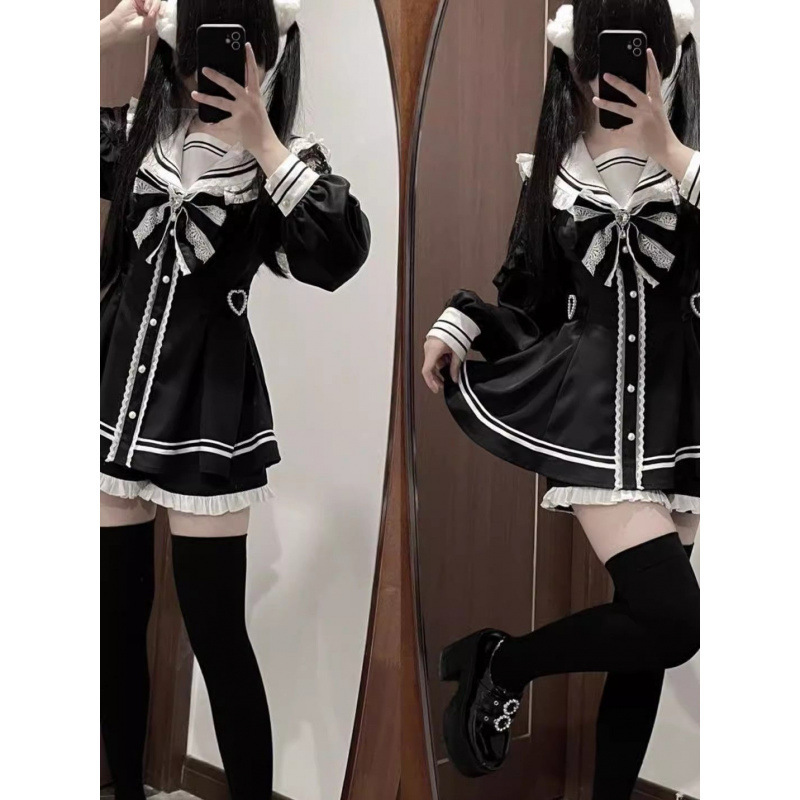 【凌兰私立】校服日系水手服白色短款百搭格裙学院风甜美半身裙学