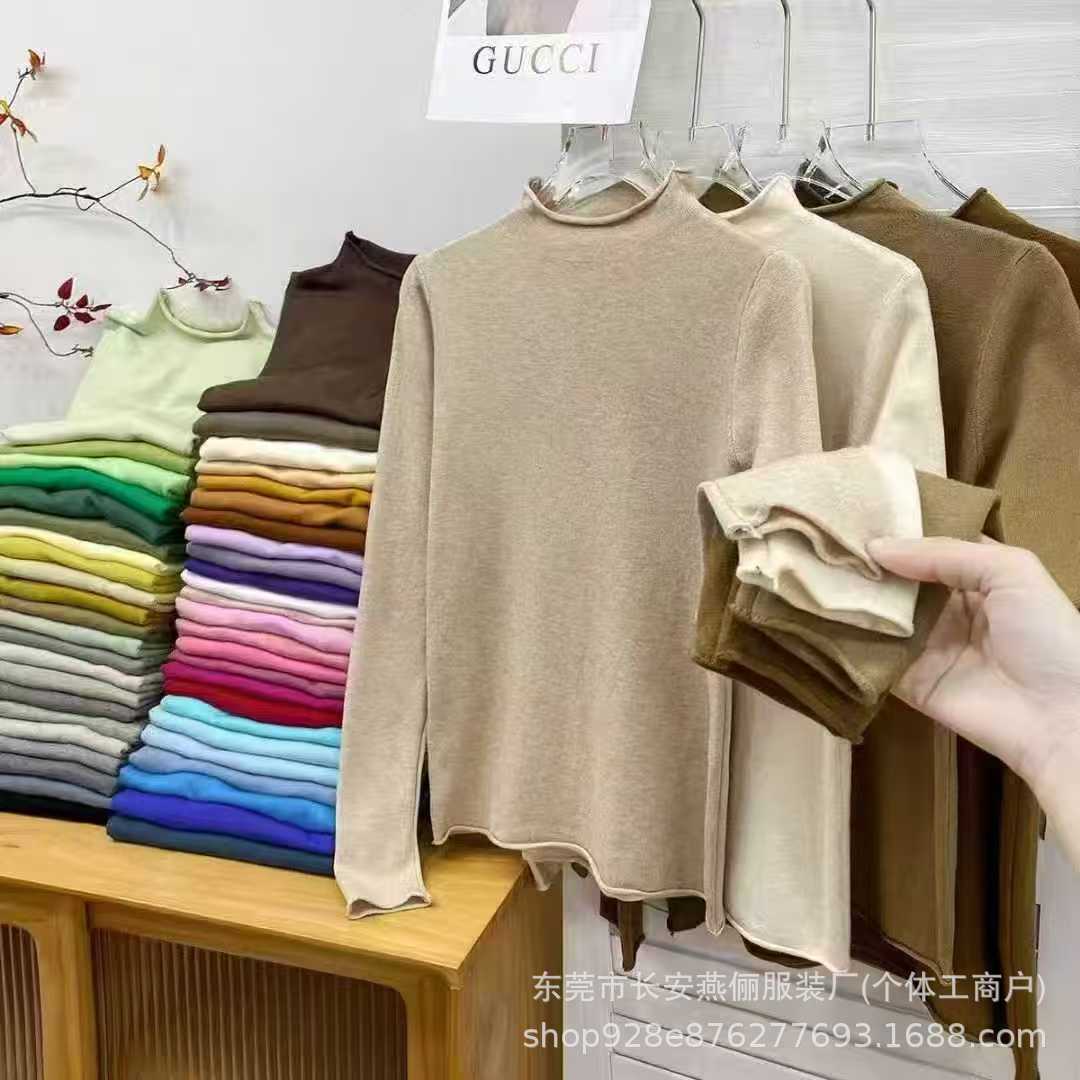 2025春季新款女式长袖打底针织衫 时尚百搭女装薄款套头针织毛衣