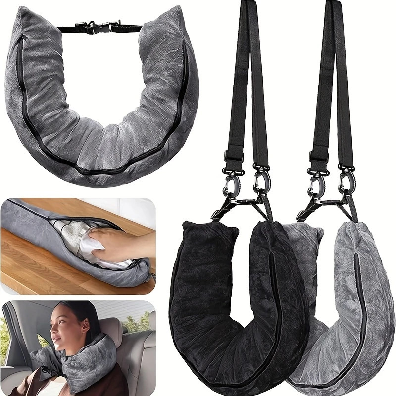 【】多功能可做U形枕毛巾衣物收纳柔软毛绒填充枕旅行枕侧睡