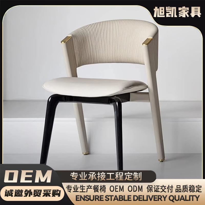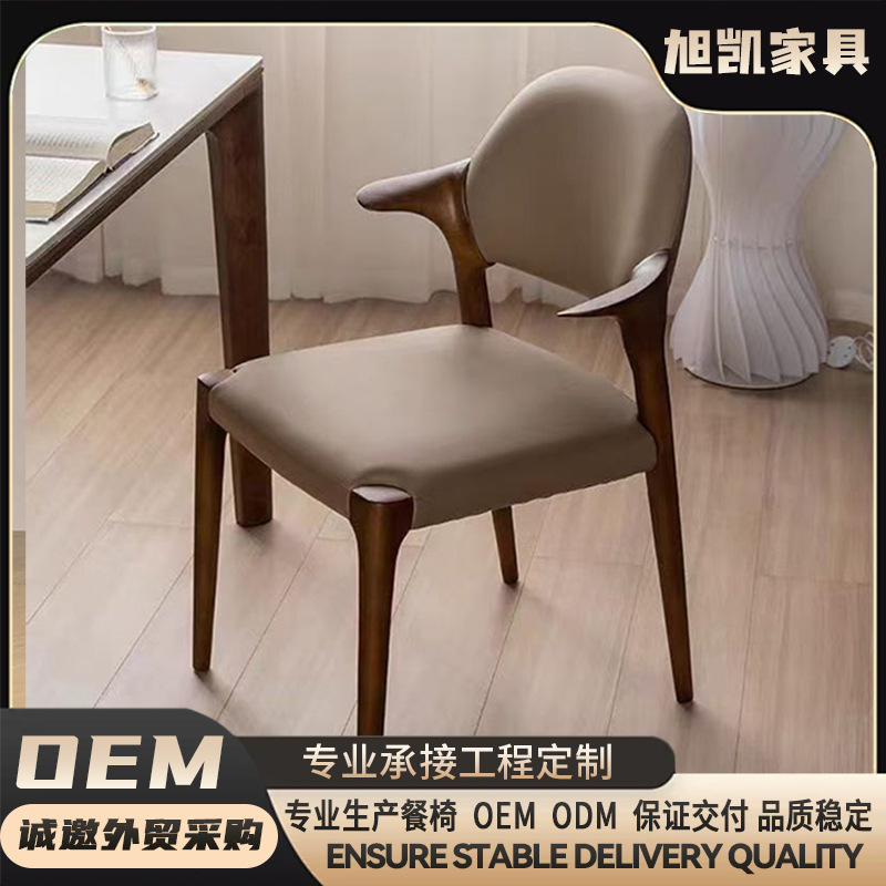 工厂直供意式极简餐椅北欧实木真皮椅子家用靠背椅餐厅凳子洽谈椅
