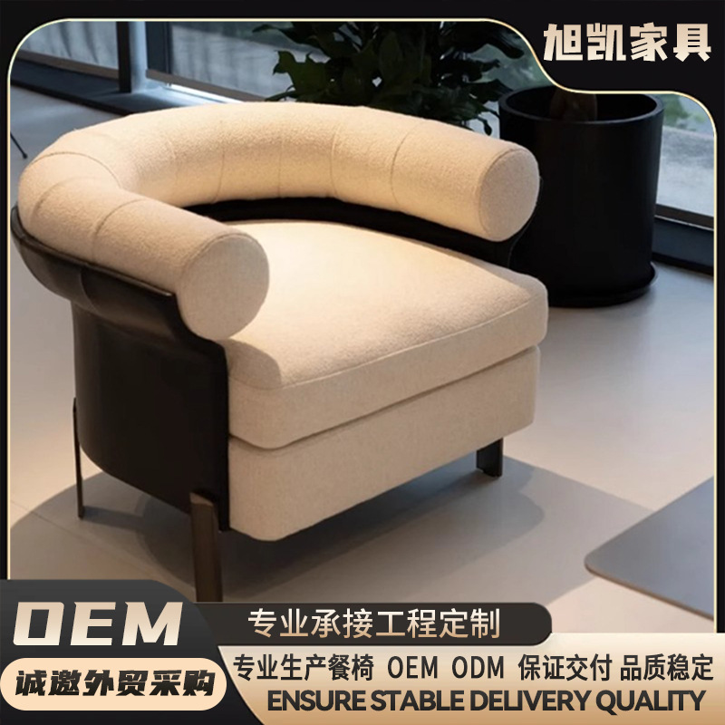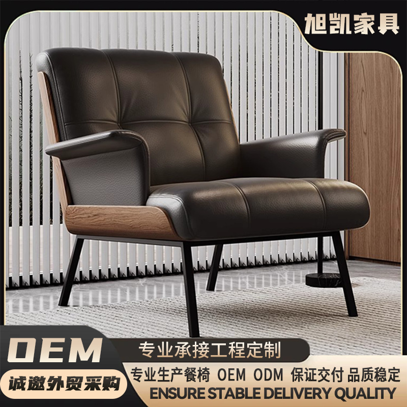 工厂直供休闲椅意式皮质单人沙发椅飞翼式扶手椅高档轻奢洽谈椅