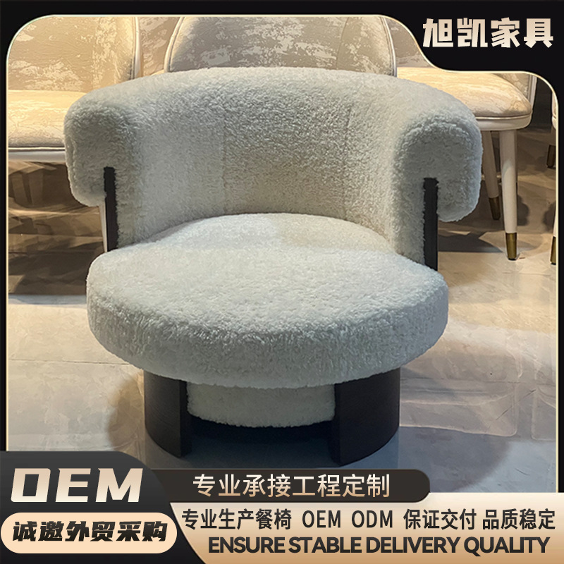 复古奶油风旋转单人沙发椅设计师中古风卧室休闲椅客厅懒人椅实木