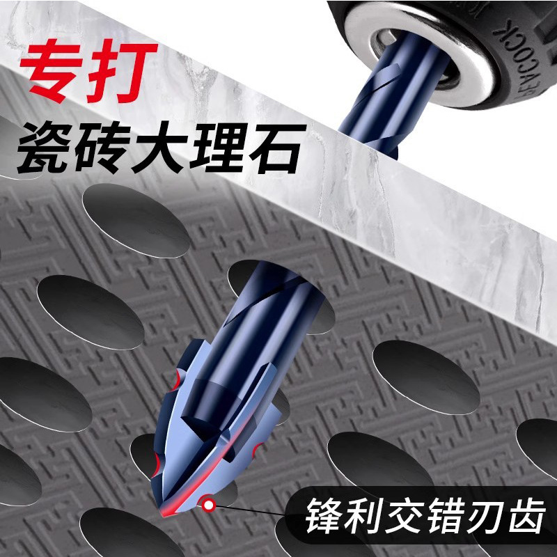 新品木工锯齿冲击钻头玻璃陶瓷干湿两用钨钢四刃瓷砖打孔钻头
