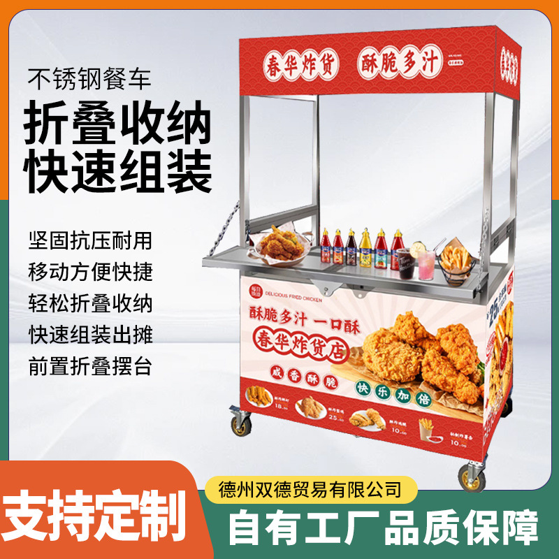 移动小吃车夜市集市摆摊不锈钢移动餐车户外手推多功能移动小吃车