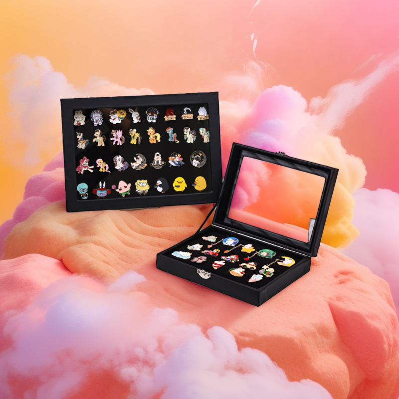 胸针盖收纳盒纪念章金属盒板带勋章收藏徽章防尘支架展示毛毡