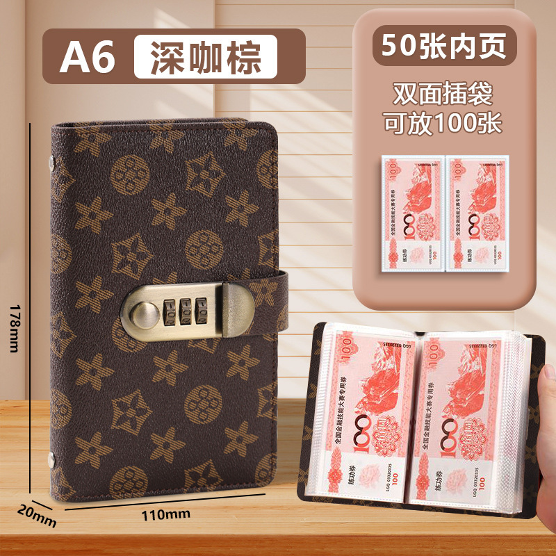 方形存钱夹钱册现金存钱本大容量收纳册密码锁活页收藏册可放现金