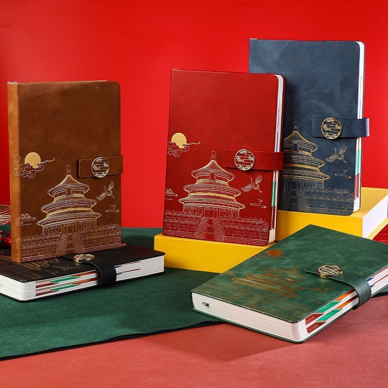 本子笔记本国潮风本子加厚记事本日记本a5带扣皮面商务会议记录本